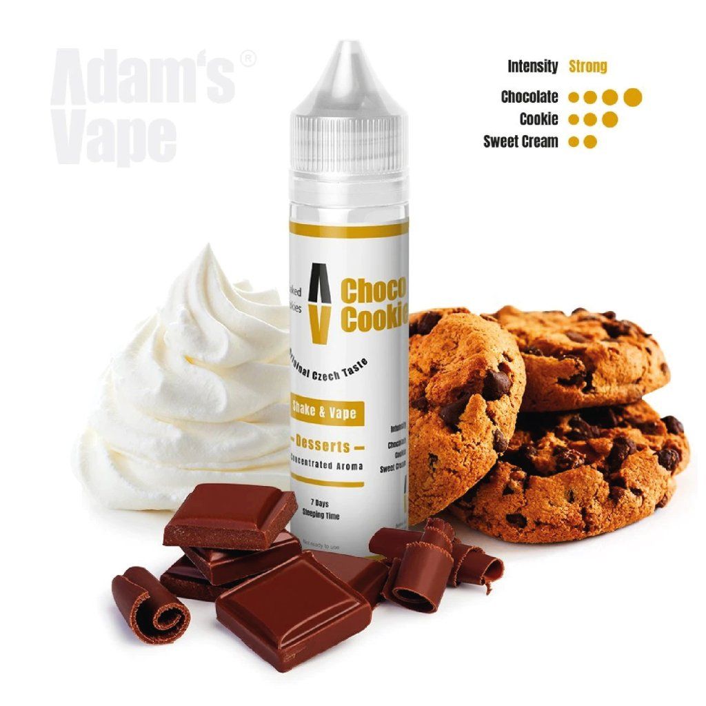 Adam's Vape Desserts Choco Cookie je shake and vape příchuť v 10ml balení určená pro přípravu vlastního e-liquidu. Po doplnění beznikotinové báze a případně nikotinového boosteru získáte hotový liquid s nastaveným poměrem PG/VG a silou nikotinu.