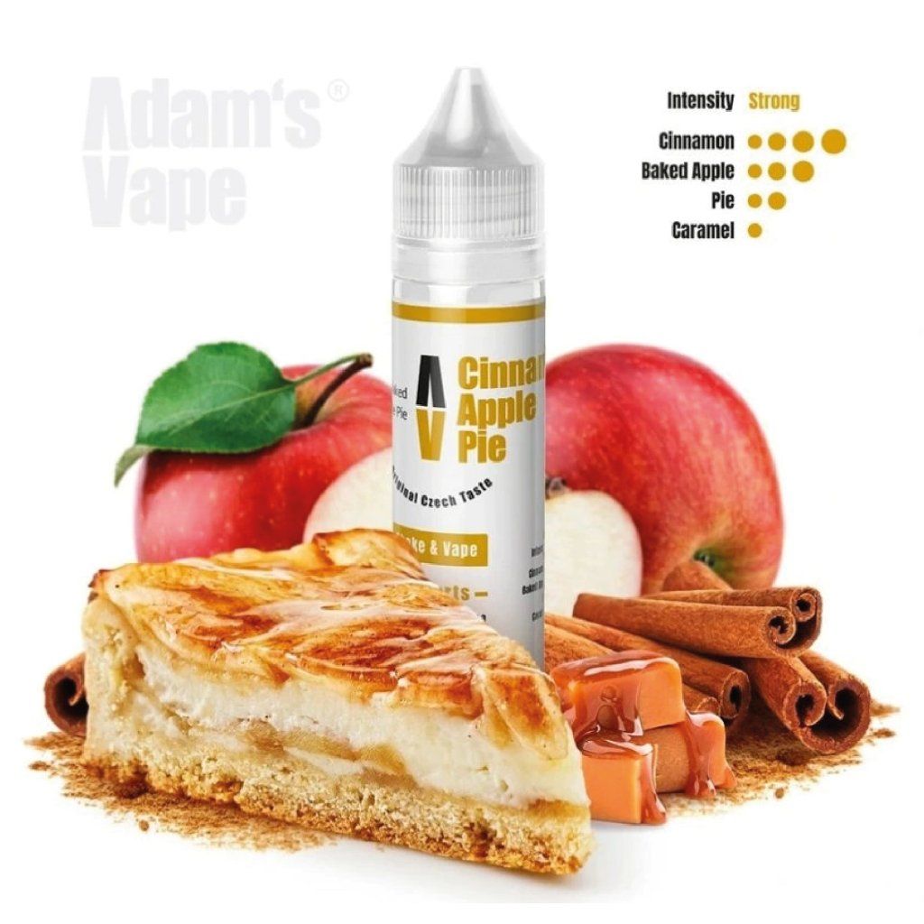 Adam's Vape Desserts Cinnamon Apple Pie je shake and vape příchuť v 10ml balení pro přípravu vlastního e-liquidu. Po doplnění beznikotinové báze a případně nikotinového boosteru vznikne hotový liquid s vámi zvoleným poměrem PG/VG a silou nikotinu.
