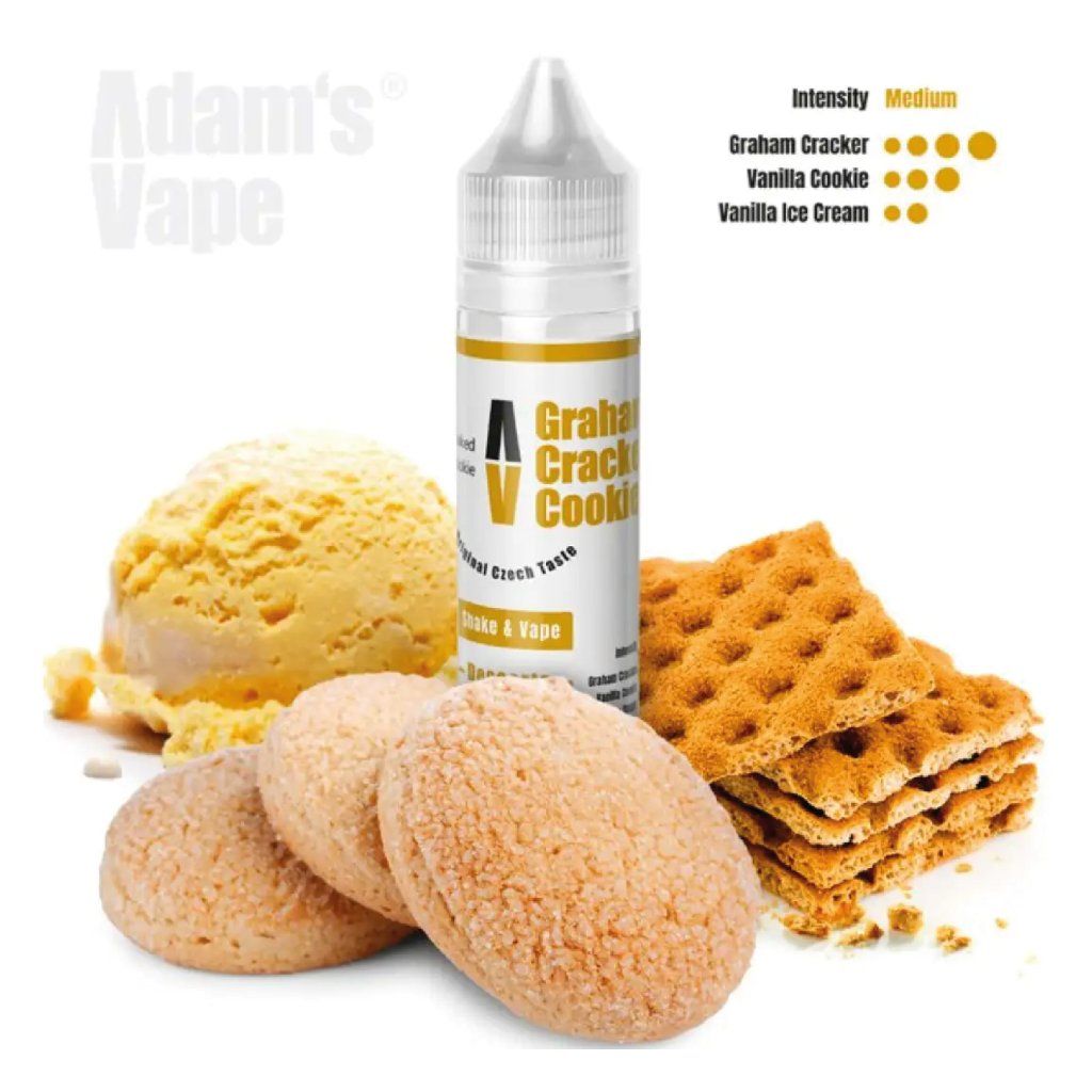 Adam's Vape Desserts Graham Cracker Cookie je shake and vape příchuť v 10ml balení určená pro přípravu vlastního e-liquidu. Po doplnění beznikotinové báze a případně nikotinového boosteru získáte hotový liquid s nastaveným poměrem PG/VG a silou nikotinu.