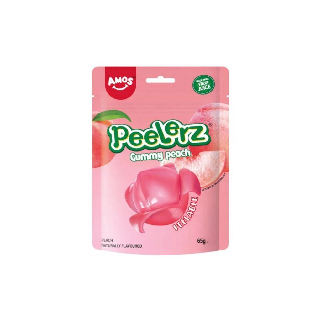 Amos Peelerz Peach jsou želé bonbony s broskvovou příchutí v balení o hmotnosti 65 g. Jedná se o měkké ovocné želé s charakteristickou strukturou, která umožňuje jednotlivé vrstvy jemně oddělovat a „loupat“.