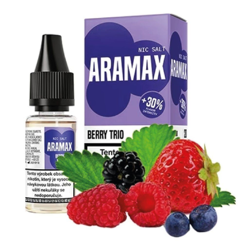 Aramax Berry Trio je hotový e-liquid s nikotinovou solí v 10ml balení. Obsahuje nikotin ve formě nikotinové soli, která zajišťuje hladší potah i při vyšší koncentraci.