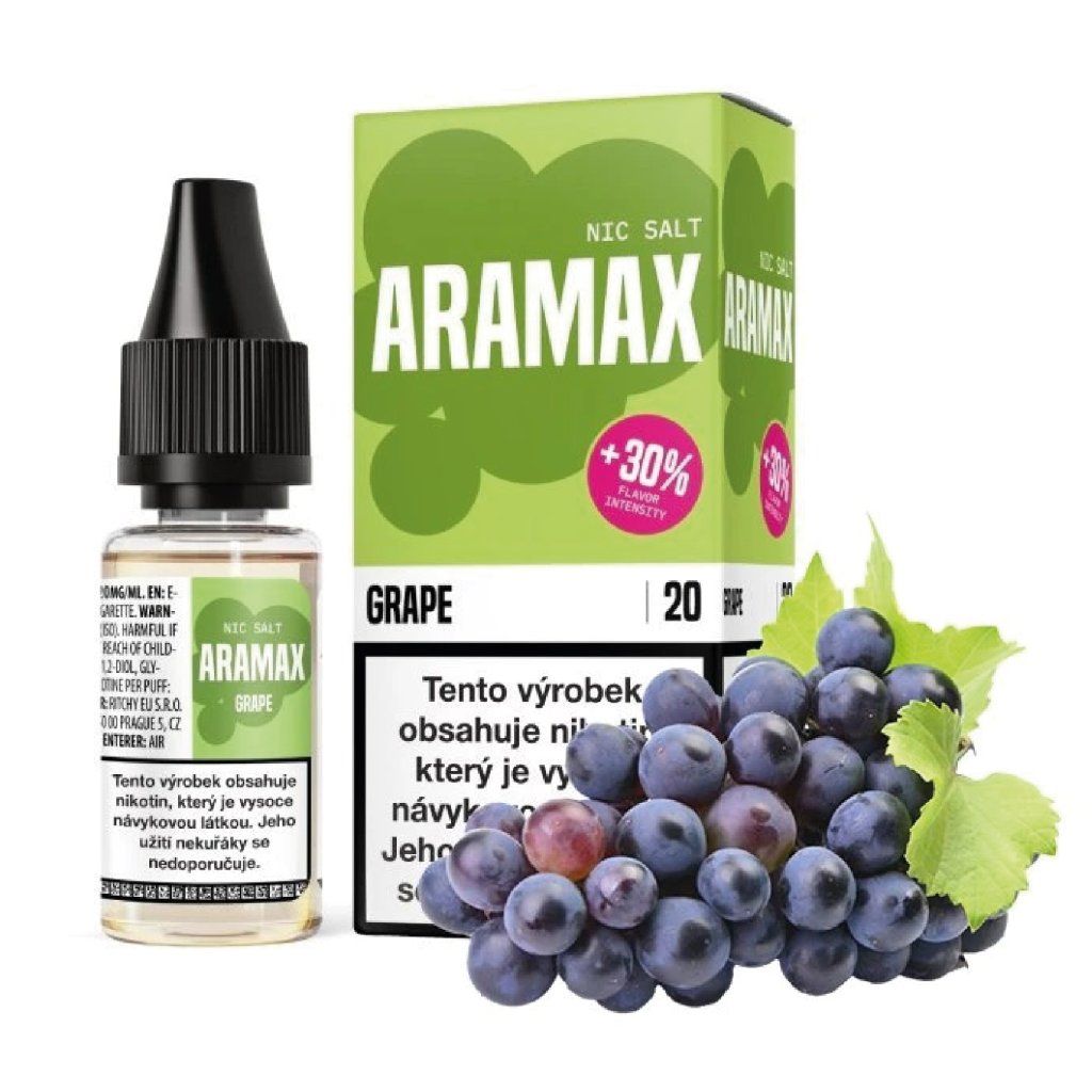 Aramax Grape je hotový e-liquid s nikotinovou solí v 10ml balení. Obsahuje nikotin ve formě nikotinové soli, která zajišťuje hladší potah i při vyšší koncentraci.