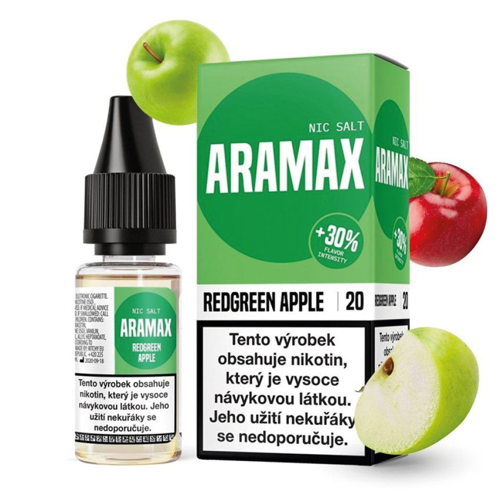 Aramax Redgreen Apple je hotový e-liquid s nikotinovou solí v 10ml balení. Obsahuje nikotin ve formě nikotinové soli, která zajišťuje hladší potah i při vyšší koncentraci.