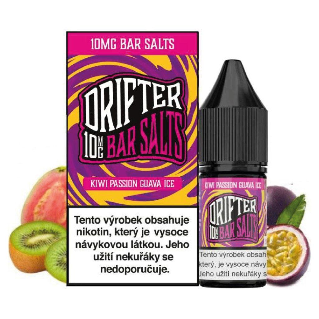 Drifter Bar Salts Kiwi Passionfruit Guava Ice je hotový e-liquid s obsahem nikotinové soli v 10ml lahvičce. Je určen pro MTL zařízení a pod systémy s vyšším odporem.