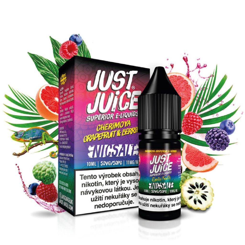 Just Juice Cherimoya Grapefruit & Berries je e-liquid s nikotinovou solí v 10ml lahvičce.