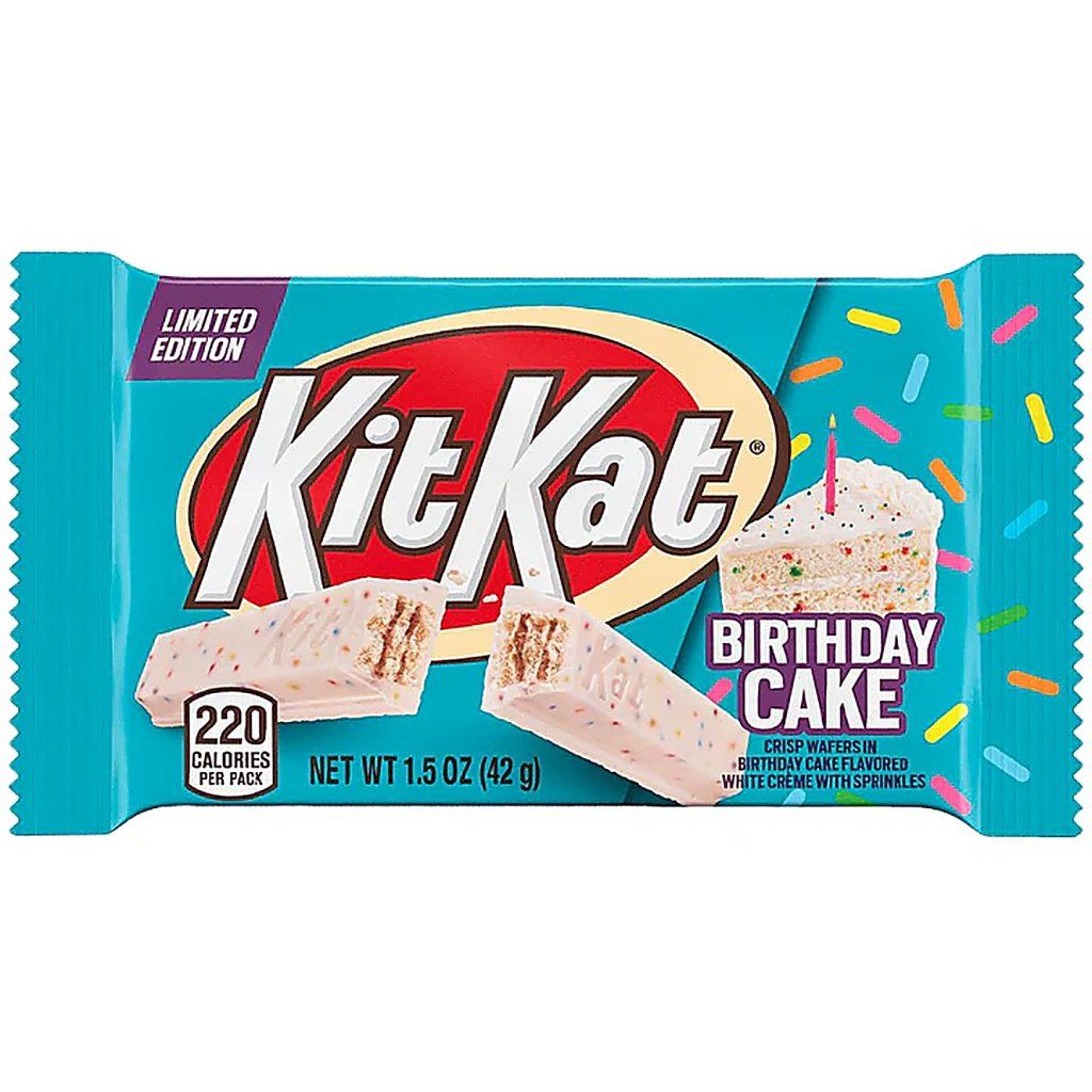 KitKat Birthday Cake je čokoládová tyčinka s oplatkou a polevou s příchutí narozeninového dortu o hmotnosti 42 g. Základem jsou křupavé oplatkové vrstvy typické pro tyčinky KitKat.