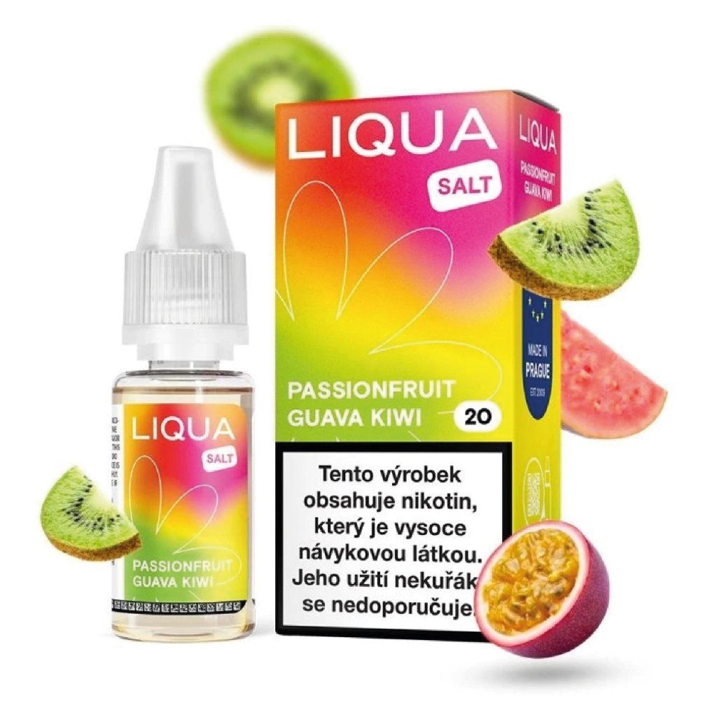 Liqua Passionfruit Guava Kiwi 10ml je hotový e-liquid s nikotinovou solí, určený pro MTL elektronické cigarety a pod systémy s vyšším odporem.