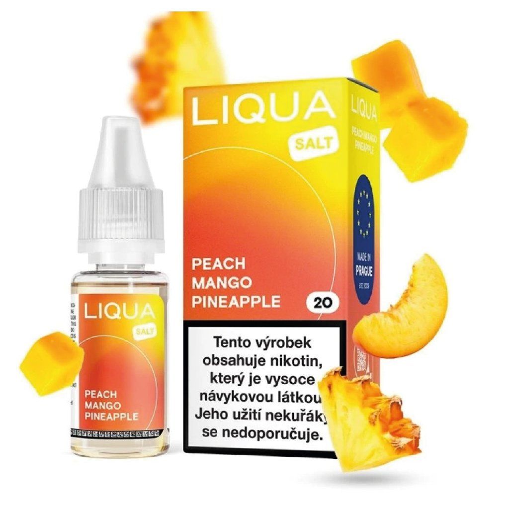 Liqua Peach Mango Pineapple 10ml je hotový e-liquid s nikotinovou solí, určený pro MTL elektronické cigarety a pod systémy s vyšším odporem.