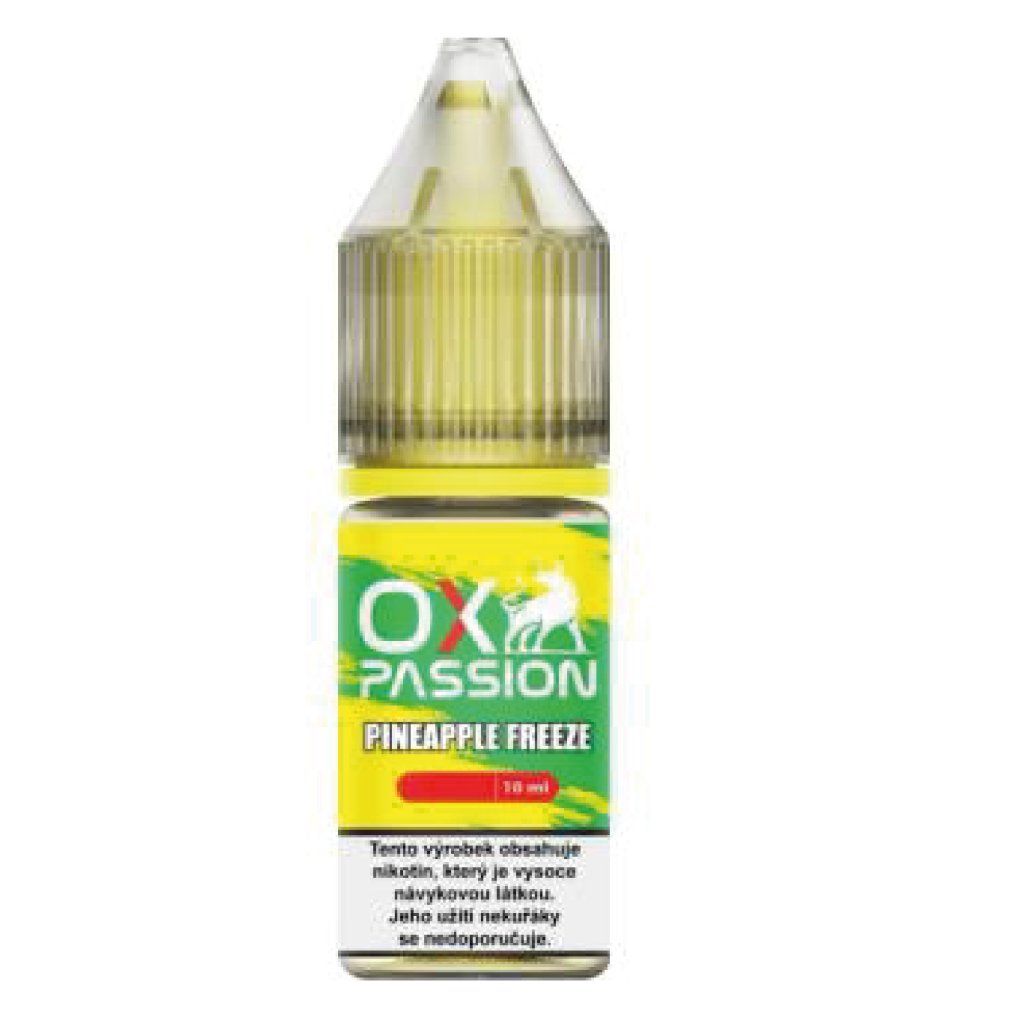 OXVA Ox Passion Pineapple Freeze je hotový e-liquid s nikotinovou solí v 10ml balení. Poměr PG/VG je 50/50, což je vhodné pro MTL pod systémy a zařízení s vyšším odporem.