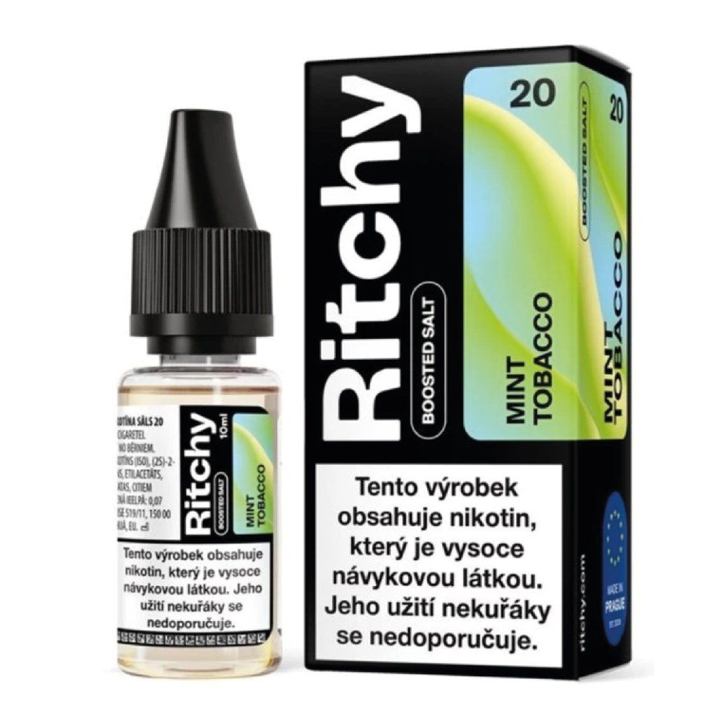 Ritchy Mint Tobacco 10 ml je e-liquid s nikotinovou solí určený pro MTL pod systémy a nízkovýkonná zařízení.