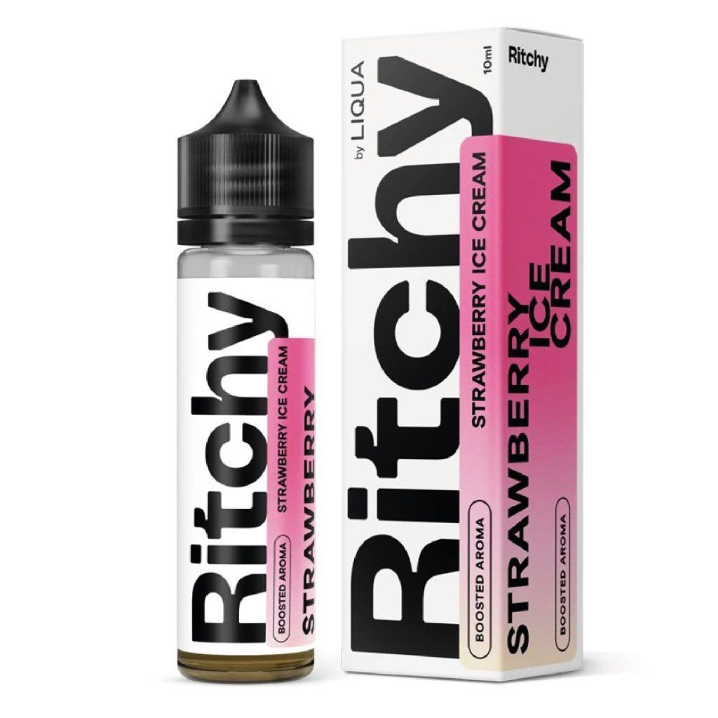 Ritchy Strawberry Ice Cream 10 ml je shake & vape aroma s jahodou a smetanovou zmrzlinou.