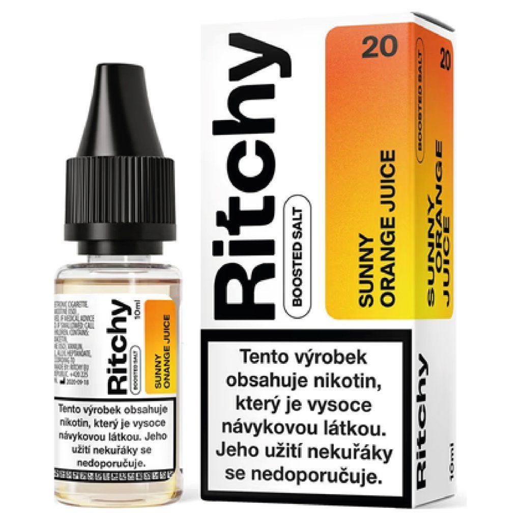 Ritchy Sunny Orange Juice 10 ml je e-liquid s nikotinovou solí určený pro MTL pod systémy a zařízení s nižším výkonem.
