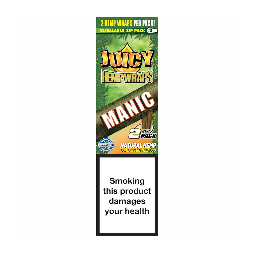 Juicy Hemp Wraps Manic jsou ochucené konopné blunty vyrobené z lisovaného technického konopí. Neobsahují tabák ani nikotin a slouží jako alternativa ke klasickým tabákovým bluntům. Varianta Manic nabízí exotickou mangovou příchuť. Balení obsahuje 2 samostatné wrapy připravené k použití.